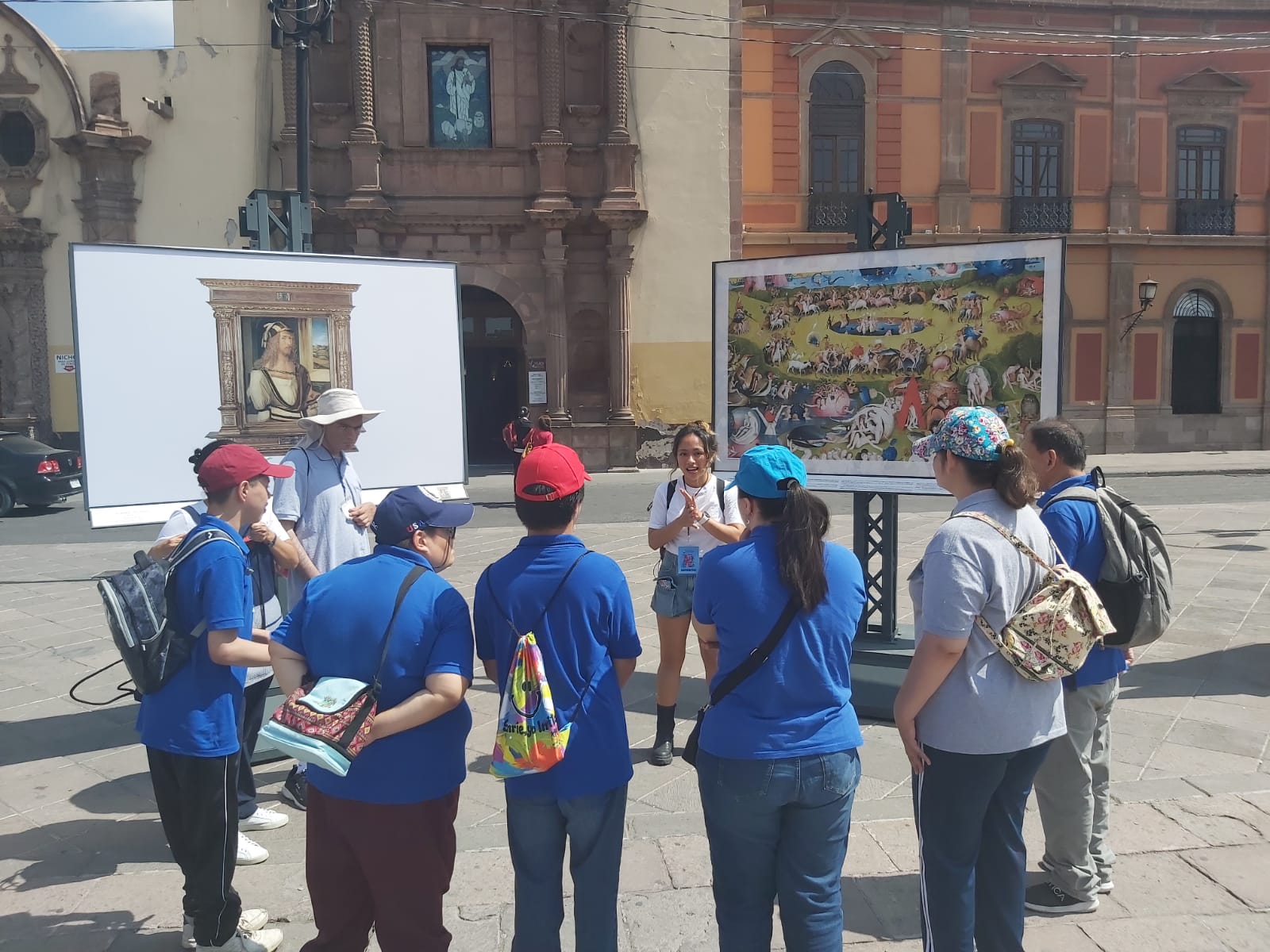 El Gobierno de la Capital invitó a chicas y chicos de la Asociación Intégrame Down AC, que se presentaron al primer recorrido y taller preparados en el marco de la Exposición de El Museo del Prado en San Luis, muestra de pintura de alto nivel que se expone en la Plaza de Fundadores hasta el 1 de octubre del presente año.