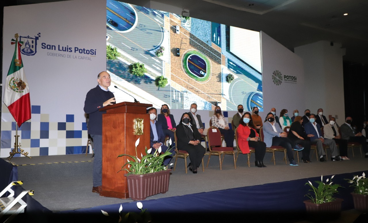 Con la presencia de representantes de sectores económicos, políticos, sociales y de los tres poderes del estado; abanderados por el Gobernador Ricardo Gallardo Cardona, el presidente municipal de San Luis Potosí Enrique Galindo Ceballos a través de la Dirección de Obras Públicas presentó el Programa Vialidades PotoSÍnas cuya inversión total ascendería a los 1,500 millones de pesos.