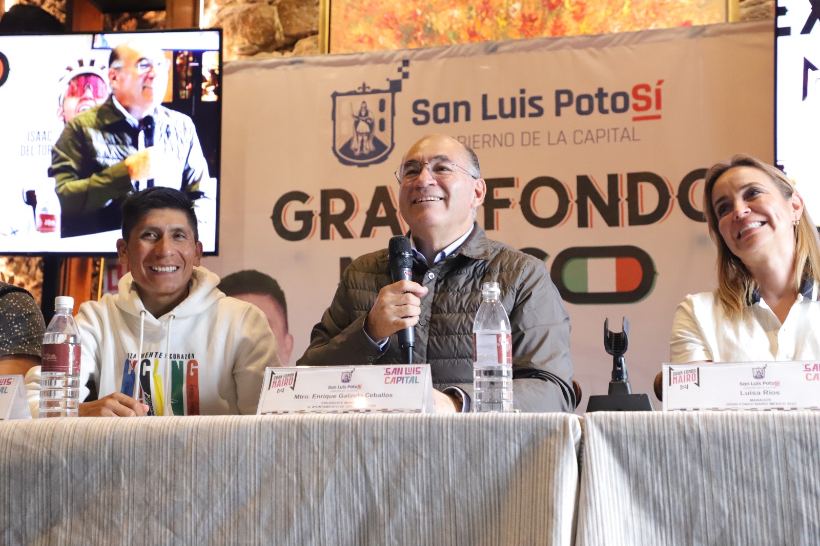 El Jefe de Gobierno Municipal destacó la visión social de Nairo Quintana, por lo que como parte del amplio programa de este evento, se incluye un conversatorio con el público en general; el sábado se realizará “Nairo Kids” en Plaza de Fundadores y llegará Isaac del Toro, considerado la nueva joya del ciclismo mexicano, a quien se le entregará un reconocimiento y estará también en el Gran Fondo. El Alcalde Enrique Galindo Ceballos añadió que a petición del ciclista colombiano, “en esta edición se saldrá del Centro y se tiene como meta el Centro Histórico, para promover el primer cuadro de San Luis Capital, a la par contaremos con más de 200 voluntarios, a fin de que todo el programa se lleve a cabo de manera ordenada”.