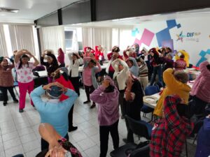 SLP.- Más de medio centenar de integrantes de los Clubes de Adultos Mayores del Sistema Municipal DIF, acudieron a capacitación de fin de año donde además de elaborar las manualidades que trabajarán durante diciembre en sus grupos, recibieron una plática y activación física.
