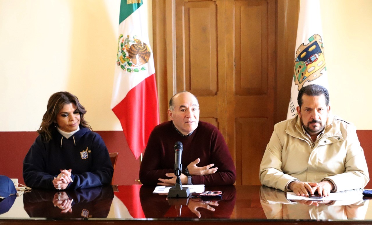 En rueda de prensa, posterior a la aprobación en el Congreso del Estado de las tarifa de agua de Interapas para el año 2022, el alcalde Enrique Galindo Ceballos estuvo acompañado por el director general del organismo operador, José Enrique Torres López y por la regidora María de los Ángeles Hermosillo, presidenta de la Comisión del Agua del Cabildo de San Luis Potosí.