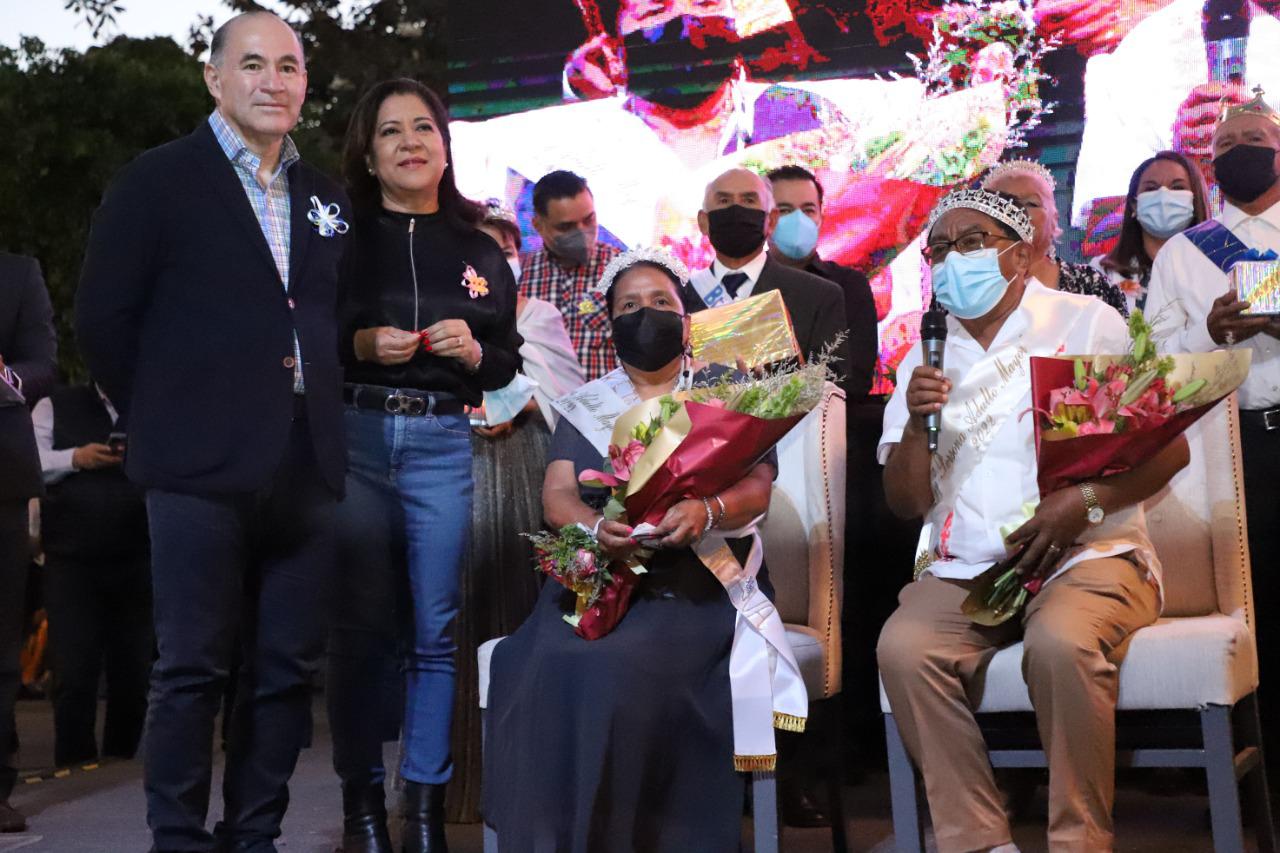 Los galardonados fueron coronados por el alcalde y la presidenta del DIF Municipal, quienes festejaron junto con la audiencia el entusiasmo de los adultos mayores que participaron en el certamen, desde los distintos espacios destinados a la atención de este sector de la población: “Es un orgullo reconocer hoy a las personas que han construido amorosamente a las familias de nuestro municipio, ustedes son muy importantes para nosotros, necesitamos de su sabiduría todos los días”, les expresó la presidenta del DIF capitalino.