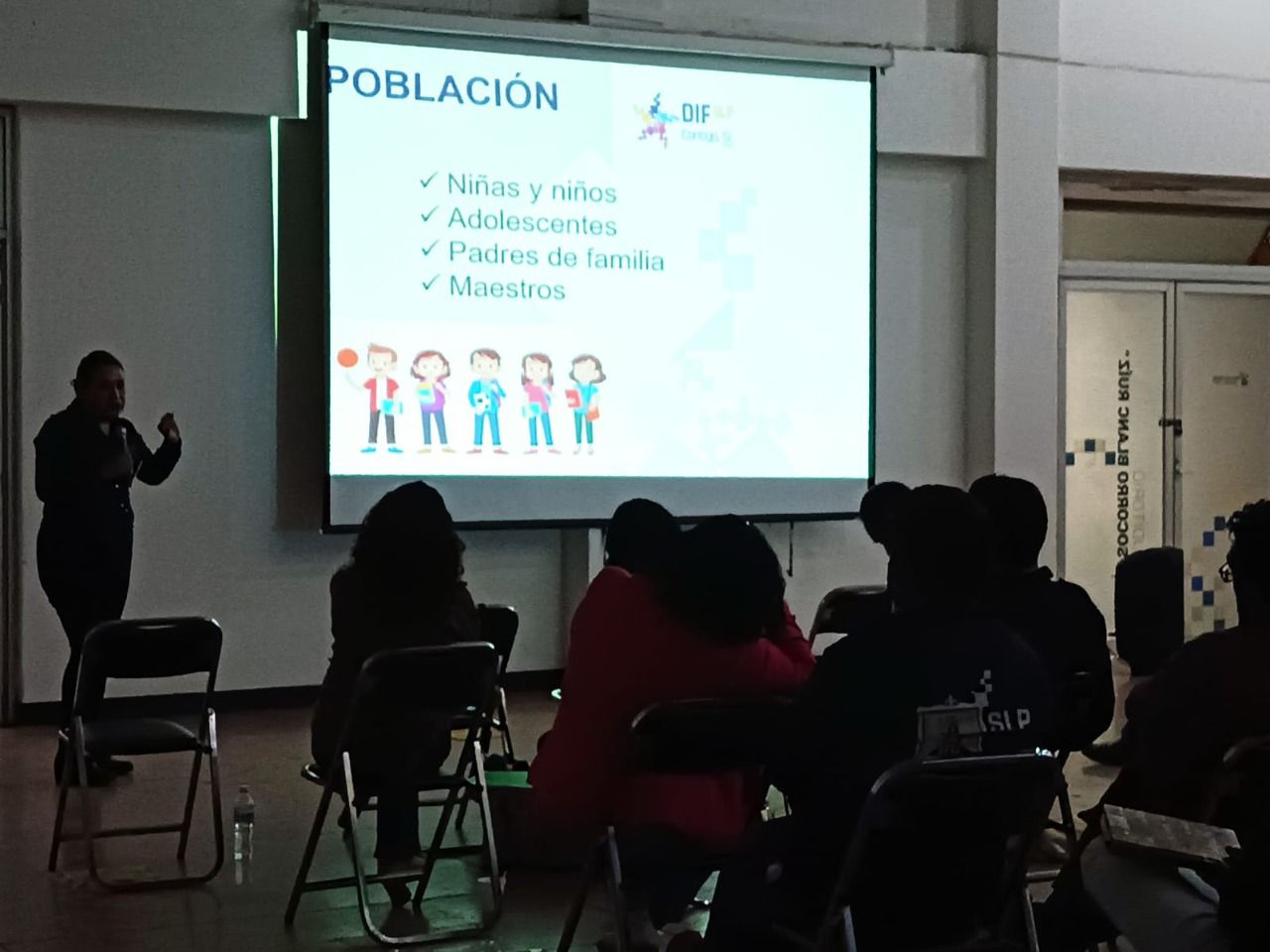 Por tal motivo, y en coordinación con la Dirección de Educación Municipal, se realizó una plática de «detección de indicadores de riesgo», a la que acudieron 70 personas entre directivos y docentes, con la finalidad de identificar las situaciones que suceden a las y los niños, que les puedan afectar en su desempeño, y así orientar a las madres, padres de familia y tutores para evitar y prevenir comportamientos negativos o que afecten su salud y bienestar.