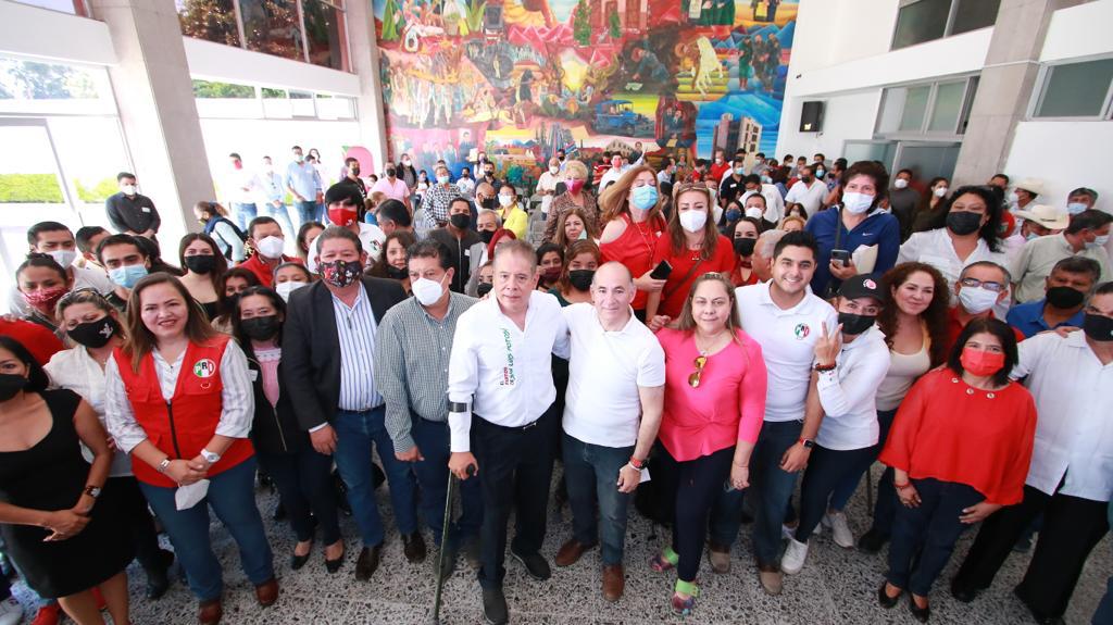 Acompañado por el presidente del CDE, Elias Pesina Rodríguez, así como de ex presidentes tales como Hugo Abelardo Urbina Santoyo, Ángel Castillo Torres, Miguel Martínez Castro y Martín Juárez Córdova; el alcalde capitalino agradeció el apoyo de las bases priistas, así como de los diferentes partidos que le permitieron conquistar los votos ciudadanos y aseguró, que aunque tuvo que esperar más de treinta años, él es el mejor ejemplo de que el partido recompensa.