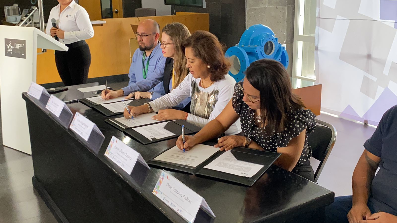 Finalmente, la directora del DIF Municipal, Jessica Albarrán, puntualizó que el convenio de colaboración permitirá colocar a personas con discapacidad motriz, auditiva, visual, intelectual y psicosocial en el mercado laboral, y esta institución será un enlace entre las personas que se registran en la bolsa de trabajo del DIF, además de llevar cursos y talleres sobre «Toma de conciencia» y «Lengua de Señas Mexicana», entre otros.