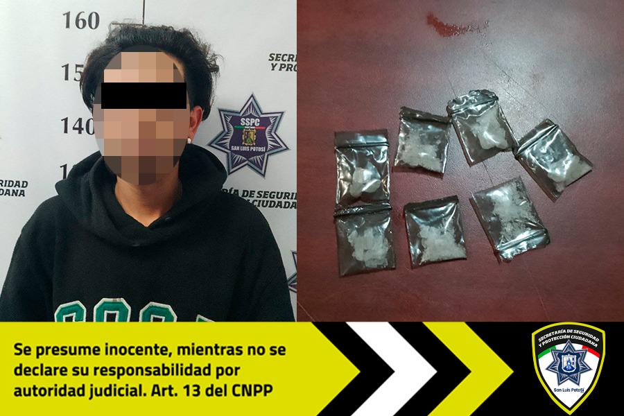 Razón por la que se acercaron a él, notando que arrojó las latas que ingería hacia el techo de un domicilio e inmediatamente intentó darse a la fuga. Luego de darle alcance, los agentes le indicaron la falta administrativa cometida, procediendo a realizarle una inspección preventiva de seguridad, encontrándole en posesión de cuatro bolsas de polietileno transparente que contenían polvo blanco granulado con las características físicas de la droga sintética conocida como cristal. El detenido responde al nombre de Benigno “N” de 21 años.