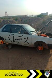 Agentes municipales de la Secretaría de Seguridad y Protección Ciudadana (SSPC) llevaron a cabo la localización y recuperación de un vehículo que contaba con reporte de robo vigentes, la unidad fue localizada con huellas claras de desvalijamiento en un predio de la colonia El Aguaje.