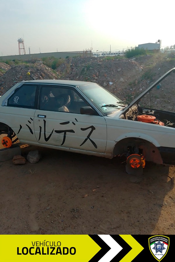 Los oficiales de Guardia Municipal, patrullaban sobre sobre prolongación de avenida Salk, próximos al Panteón Jardines Perpetuos, cuando notaron la presencia de un vehículo marca Nissan Tsuru color blanco, el cual se encontraba sobre unos tabiques y sin llantas.