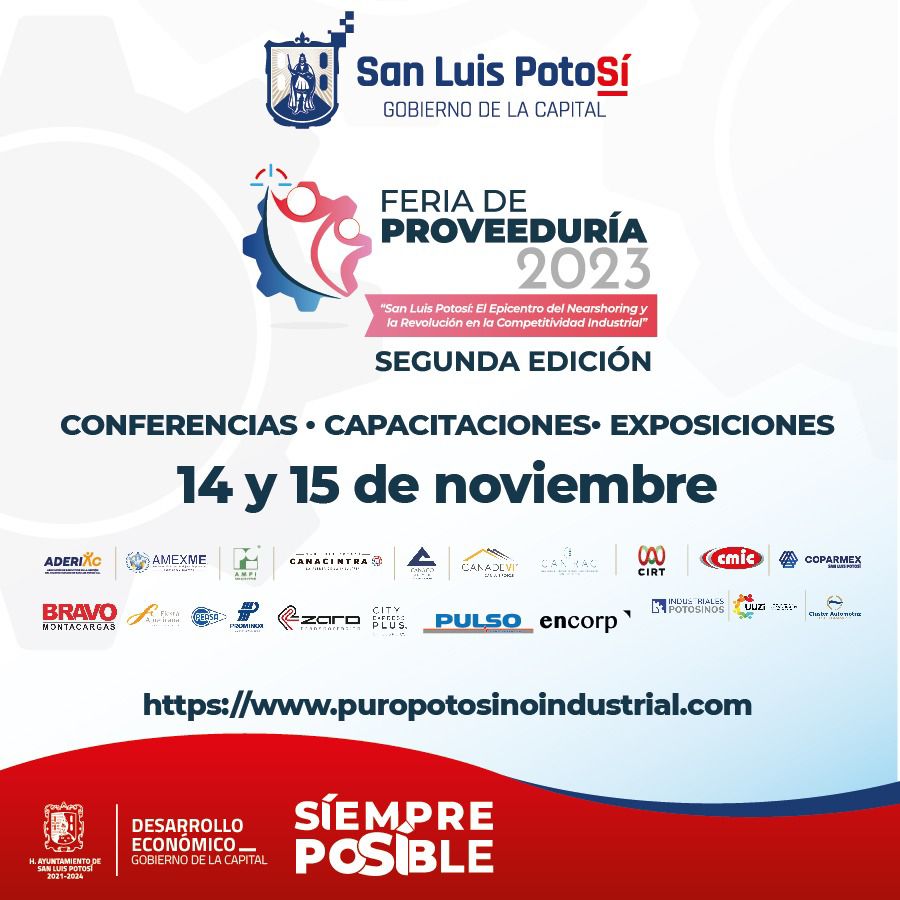 La Feria de la Proveeduría se efectuará el 14 y 15 de noviembre en el Centro de Convenciones de San Luis Potosí y contará con la participación de proveedores del sector industrial, para ofrecer sus productos a las empresas instaladas en San Luis Potosí.