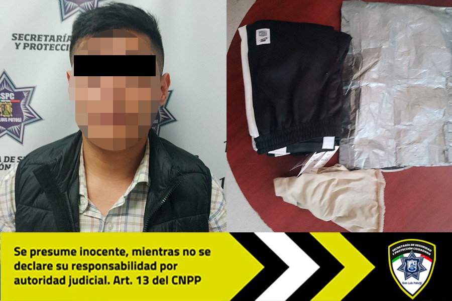 Se supo que el joven fue detectado intentando salir del comercio con una bolsa color gris fajada a otra prenda de vestir, donde llevaba cuatro pants deportivos de la marca Nike, mercancía con un costo de 4,996 pesos.