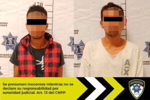 Derivado de una oportuna y efectiva respuesta a un reporte de robo a transeúnte, agentes de Guardia Municipal de la Secretaría de Seguridad y Protección Ciudadana (SSPC) llevaron cabo la localización y detención de dos hombres que fueron señalados de despojar de su teléfono móvil a un adolescente de 14 años en calles de la colonia Lomas del Mezquital. Luego de un dispositivo de búsqueda, los oficiales municipales ubicaron y arrestaron a los implicados.