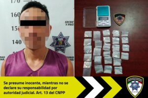 Derivado de los patrullajes de vigilancia y seguridad cobre el cuadrante norte de la Capital, agentes de Guardia Municipal de la Secretaría de Seguridad y Protección Ciudadana (SSPC) llevaron a cabo la detención de una persona de sexo masculino que fue detectado en calles del fraccionamiento Tecnológico en posesión de diversas dosis de la droga conocida como cristal.