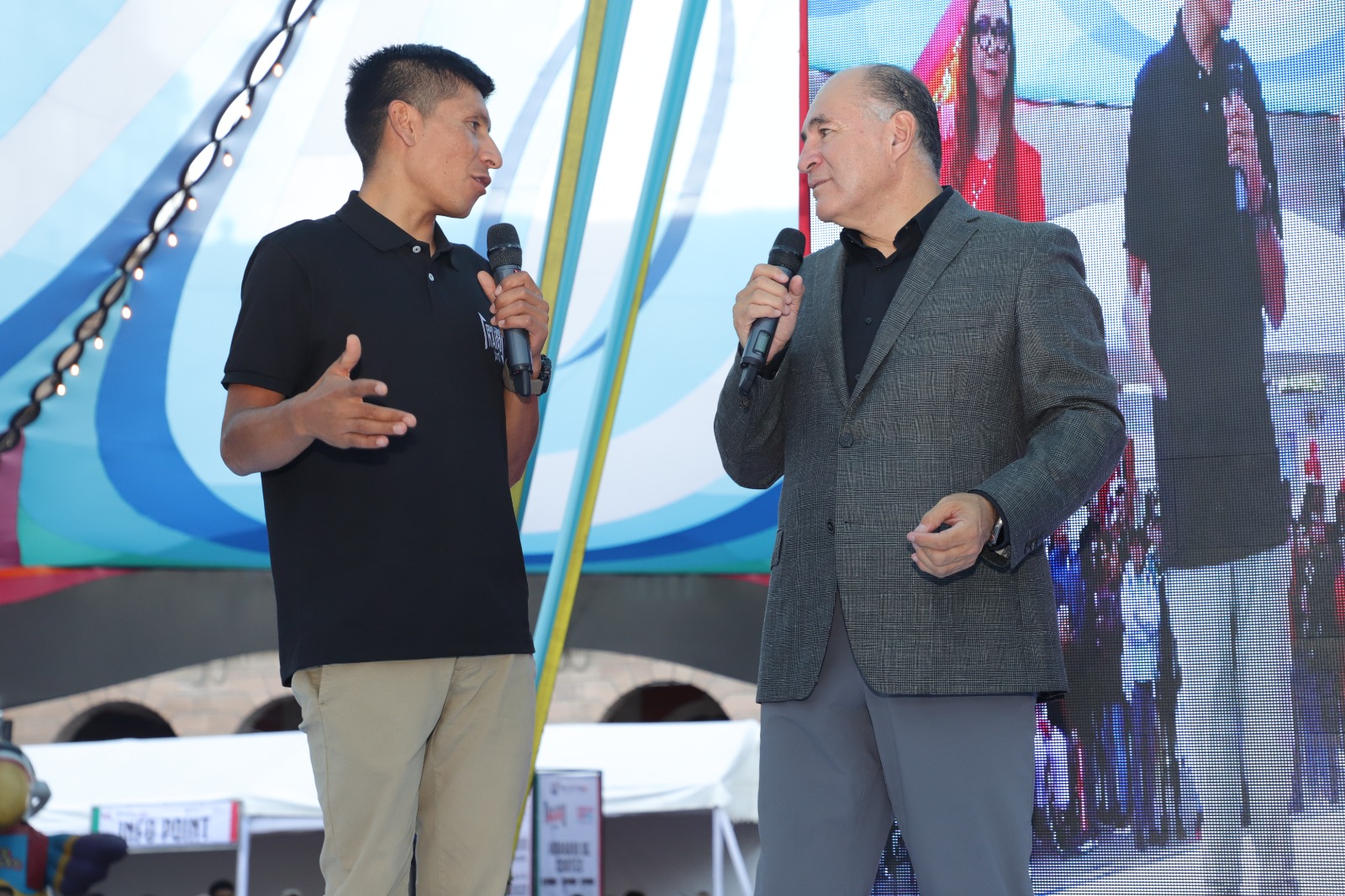 Este viernes en la Plaza de los Fundadores, el legendario ciclista colombiano Nairo Quintana motivó e inspiró con su historia a los asistentes, ante quienes expuso que la disciplina es fundamental para alcanzar los objetivos personales y profesionales.