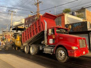 Se informa que la tarea consiste en nivelación con carpeta de rodamiento y reencarpetamiento hasta el andador Pirul, dando salida a la circulación vehicular en el carril izquierdo de poniente a oriente, con cierres momentáneos solo cuando las máquinas ejecutan alguna acción.