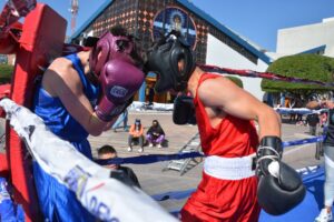 Por lo anterior, la Dirección de Deporte Municipal montó un cuadrilátero en el jardín de Tequis, para la atractiva exhibición, en la que los propios peleadores tuvieron la oportunidad de “guantear” y dar una ligera demostración del gran trabajo que se tiene, así como su desarrollo.