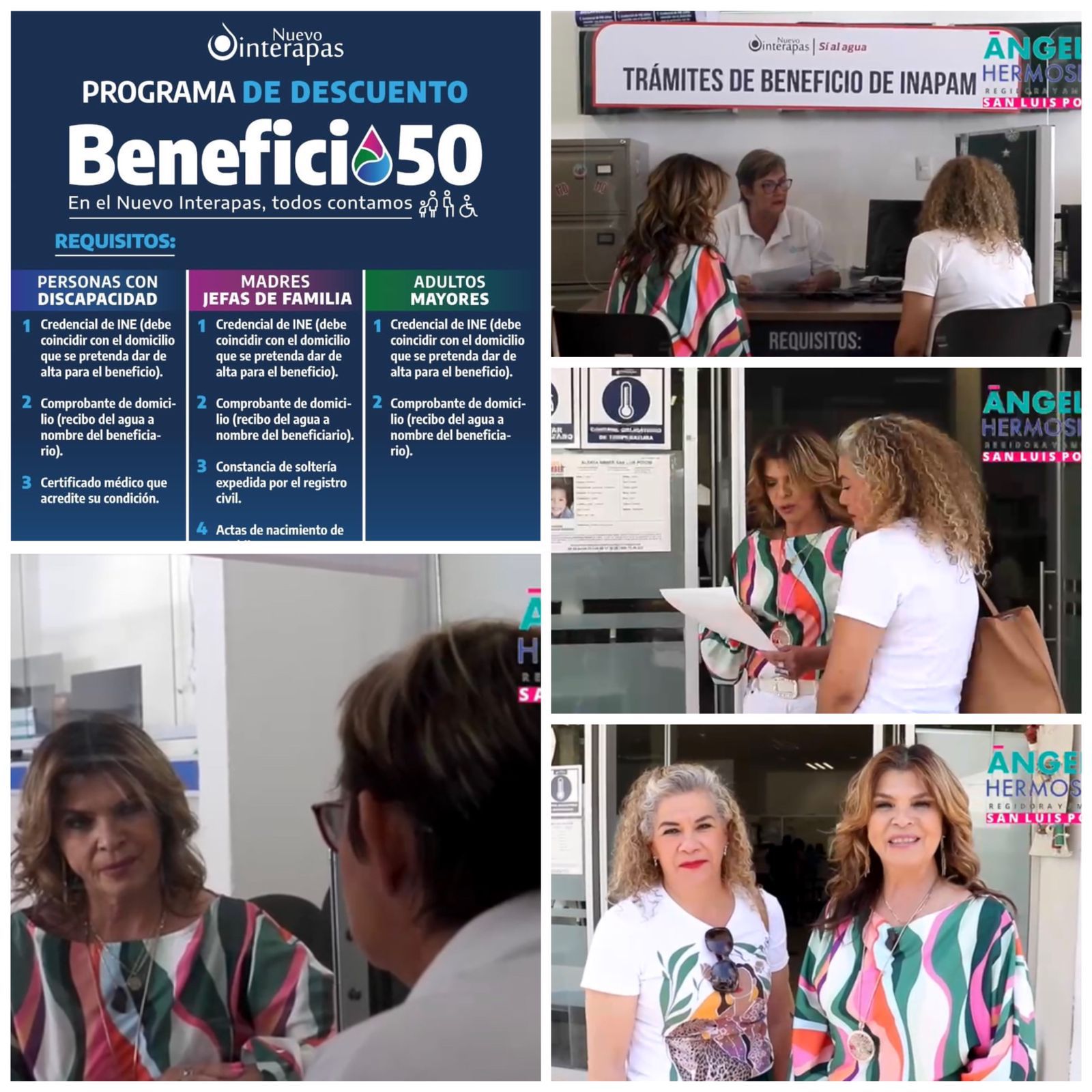 En cuanto a quienes piden incluirse en el programa “Beneficio 50”, para personas adultas mayores: recibo de agua a su nombre; INE o en su defecto, tarjeta INAPAM; predial u otro comprobante de domicilio y también estar al día en sus pagos. No obstante, también hay apoyos para personas con discapacidad, y tienen que presentar recibo de agua a su nombre; INE; constancia que acredite la discapacidad física, intelectual o motriz, así como estar al corriente en sus cuentas.