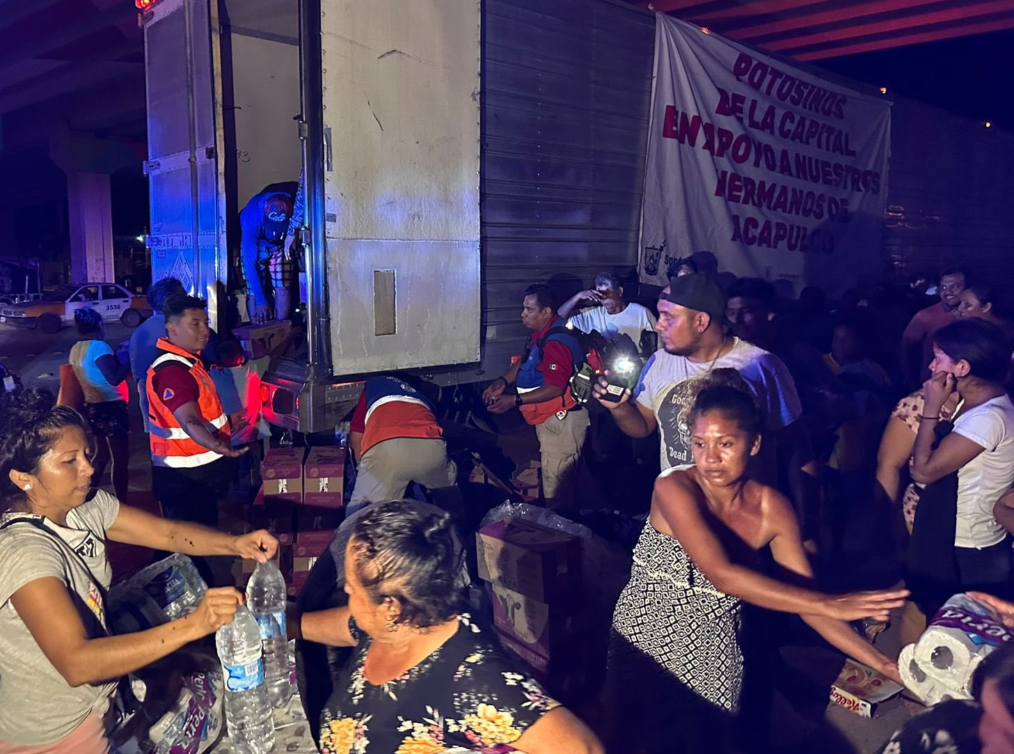 “Aproximadamente a las 5 de la tarde, la caravana del Gobierno Municipal de San Luis Potosí llegó a Acapulco con las 20 toneladas de donativos en especie para las hermanas y hermanos en desgracia por el huracán Otis. La distribución se llevó a cabo en el paso a desnivel de Puerto Marqués”, detalló.