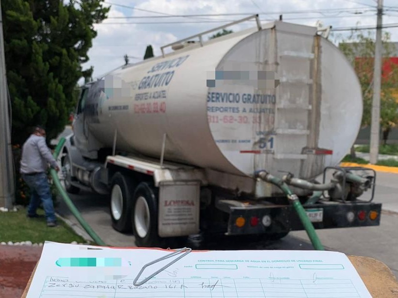 Interapas realizó, entre el domingo y el lunes, 50 viajes de pipas a las colonias San Juan de Guadalupe, Fraccionamiento Esmeralda y Valle Dorado.