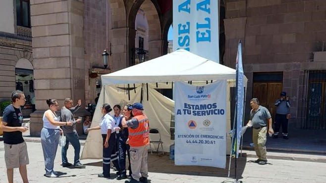 Los módulos se ubican en Plaza de Armas, frente a los arcos de Palacio Municipal, y en la Alameda Central, donde los paramédicos de Protección Civil Municipal proporcionan orientación a la población de forma preventiva y revisiones de signos vitales a quienes se sientan mal, además de proporcionar hidratación de forma gratuita.