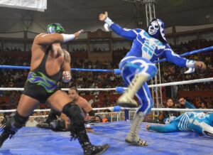 Y para abrir el telón el gran combate de “Futuras Leyendas” con Arañita, Último Tigre y Bogar Jr contra Oro Azul, Rey Águila y Coyote Azul Jr.