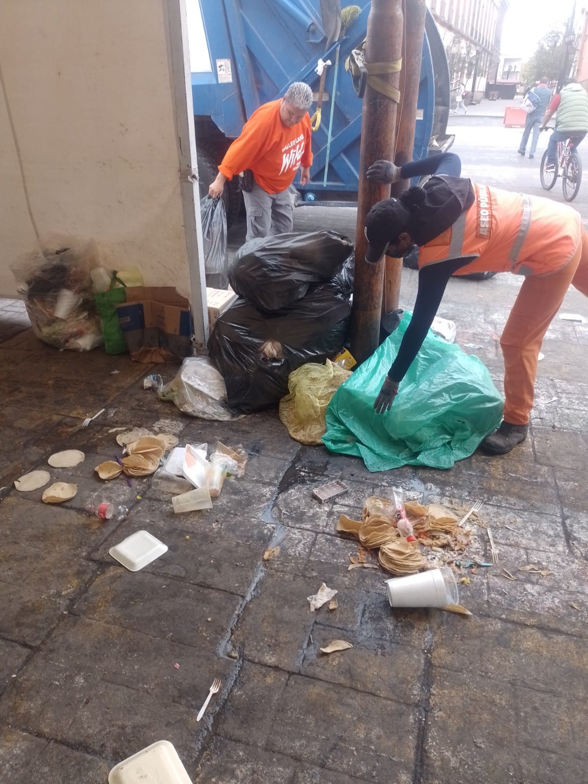 La dependencia municipal informó que solamente en lo que respecta al perímetro del Centro Histórico fueron retirados 66 mil 340 kilogramos de residuos de plazas, jardines y calles del primer cuadro: además de 57 mil 150 kilogramos de la basura llamada ocasional, a través de las 3 mil papeleras instaladas en puntos estratégicos del primer cuadro de la ciudad.