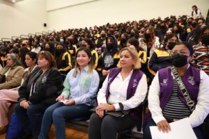 El auditorio estuvo conformado por jóvenes mujeres estudiantes de las preparatorias municipales: Nueva Generación extensión Los Silos, Nueva Generación La Pila, Ponciano Arriaga y El Saucito.