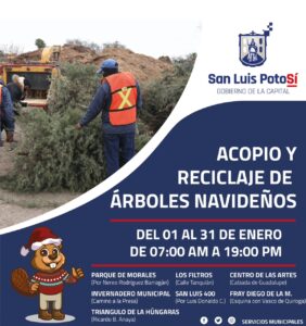 El director de Servicios Municipales añadió que los acopios que están próximos a ser abiertos permanecerán en operación hasta fin de enero, pero con probabilidad de ampliarlos hasta febrero, “por lo que no hay pretexto para desechar de manera correcta los árboles naturales que se dejaron de emplear en los festejos navideños”.