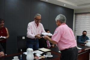 A nombre del Ayuntamiento de San Luis Potosí que encabeza el alcalde Enrique Galindo Ceballos, el director de Desarrollo Económico, Jaime Chalita Zarur, hizo entrega a las empresas de una constancia de participación, así como de una playera conmemorativa del distintivo Comunidad Futuro.