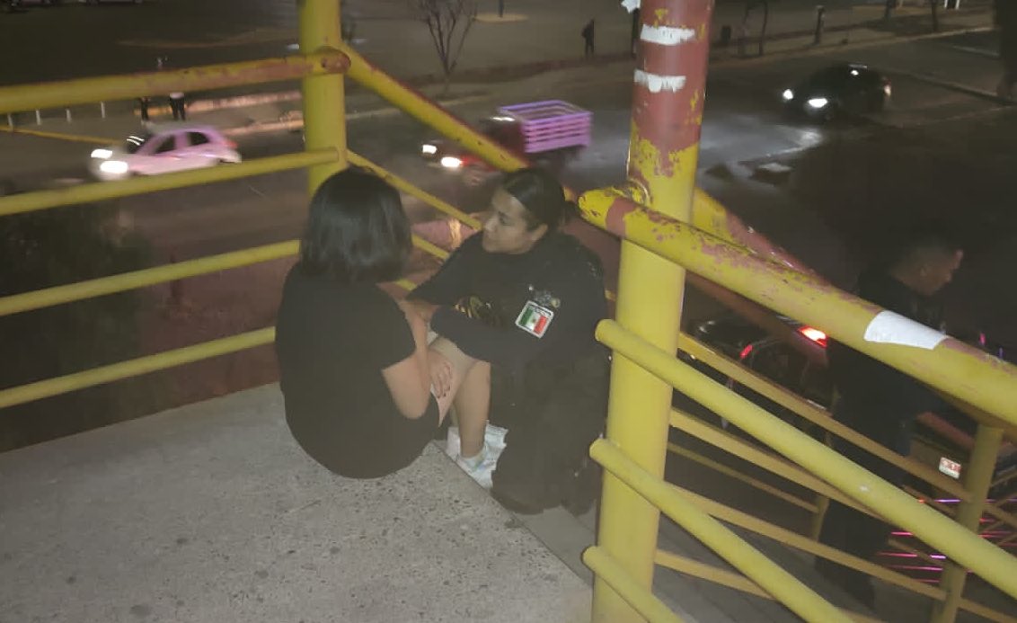 El reporte se generó la noche del pasado domingo, donde se indicaba la presencia de una mujer que se encontraba en crisis nerviosa con la presunta intención de arrojarse desde el puente peatonal, por lo que enseguida, oficiales de la Unidad Mixta de Intervención y Reacción (UMIR) se desplazaron al auxilio.