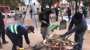 Este domingo se intervino con labores de limpieza y poda, camellones y áreas verdes del Fraccionamiento San Ángel, Secciones 1 y 2, diversas áreas municipales en conjunto con decenas de vecinos de la zona, realizaron actividades tales como pintura de guarniciones y juegos infantiles, así como retiro de maleza en esa zona habitacional del norte de la Capital.