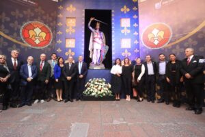 La Capital de San Luis Potosí se vistió de fiesta por los 430 años de su Fundación, por lo que el alcalde capitalino, Enrique Galindo Ceballos, inauguró el tapete monumental en Plaza de Armas y encabezó la recepción oficial de la escultura de San Luis Rey de Francia en Palacio Municipal.