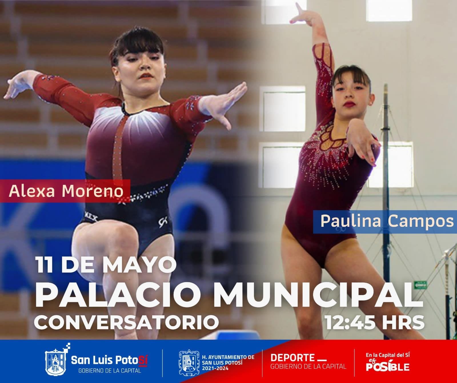 San Luis Potosí.–  La Dirección de Deporte Municipal del Gobierno de la Capital confirmó la presencia de la gimnasta mexicana Alexa Moreno, quien ofrecerá un conversatorio el próximo jueves 11 de mayo en Palacio Municipal, en evento que se programa a las 12:45 horas y donde también estará presente la mejor representante potosina en este deporte, Paulina Campos.