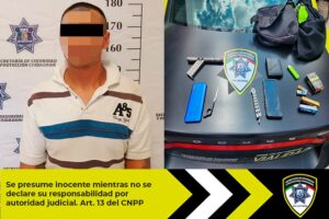 Gracias a la oportuna y eficaz atención a un reporte ciudadano, oficiales de Policía Vial de la Secretaría de Seguridad y Protección Ciudadana (SSPC) lograron la detención de una persona de sexo masculino que intentó cometer un asalto en un comercio en la colonia Satélite. El hombre fue localizado y detenido en portación de un arma de fabricación casera, una navaja y dos celulares, por lo que fue puesto a disposición de la autoridad ministerial para el deslinde de responsabilidades.