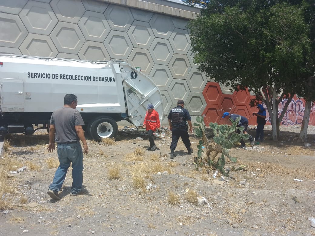 En coordinación con la Dirección de Ecología y Manejo de residuos, Aseo Público y oficiales de Guardia Municipal, se realizó una intervención en las inmediaciones de los puentes vehiculares de Carretera 57 y las avenidas Granate, Colorines y la parte baja del Distribuidor Vial Benito Juárez.