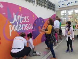 “Los murales nos contienen a todas juntas en ese caminar, en esa alianza colectiva para crear lazos, para cuidarse, sentirse seguras y acompañarse. Hablan de ellas, de nosotras, de cómo las mujeres movemos el mundo, y a pesar de las dificultades que todas atravesemos, la resiliencia y el amor siempre nos acompañan”, detalló la artista Janín Garcín, quien facilitó la pinta de los murales.