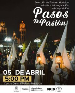Como parte de los eventos preparativos para el Festival San Luis en Primavera 2022 y la oferta turística y cultural de Semana Santa, este martes 5 de abril se inaugurará la exposición “Pasos de Pasión”, a cargo de la Dirección de Turismo Municipal, a las 13 horas, en el Centro Cultural Palacio Municipal.