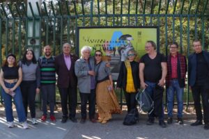 Poetas participantes del XV Festival Internacional Letras en San Luis recorrieron la muestra colectiva de diseño derivada del Concurso de Diseño Gráfico Letras en San Luis 2022, cuyo ganador fue el diseñador potosino Néstor Raúl García Rocha con el diseño “Alter Ego” inspirado en un poema del poeta colombiano Juan Manuel Roca.