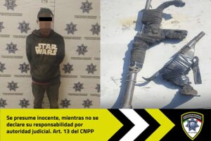 Como resultado de la rápida respuesta a un reporte ciudadano, agentes de Policía Vial de la Secretaría de Seguridad y Protección Ciudadana (SSPC), efectuaron el arresto de una persona de sexo masculino por la posesión de dos armas de fabricación casera conocidas como cachimba, durante patrullajes preventivos en las vías del ferrocarril México-Laredo y periférico norte en la colonia Los Magueyes.