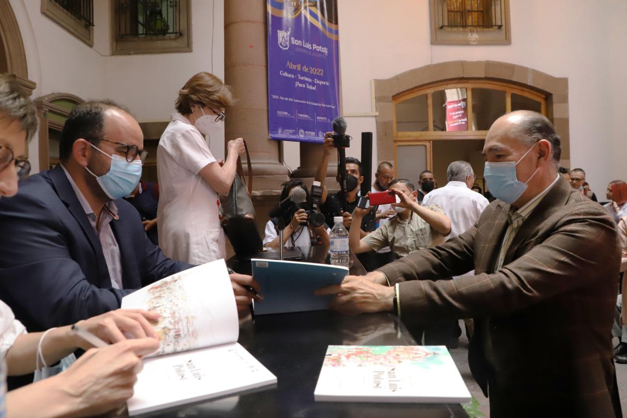 Destaca que el libro se puede descargar gratuitamente, pero el Gobierno de la Capital propuso, durante la presentación en noviembre de 2021, la publicación en físico, que obtuvo el visto bueno de las autoridades de la UASLP, por lo que ahora se presentó en el marco del Festival San Luis en Primavera.