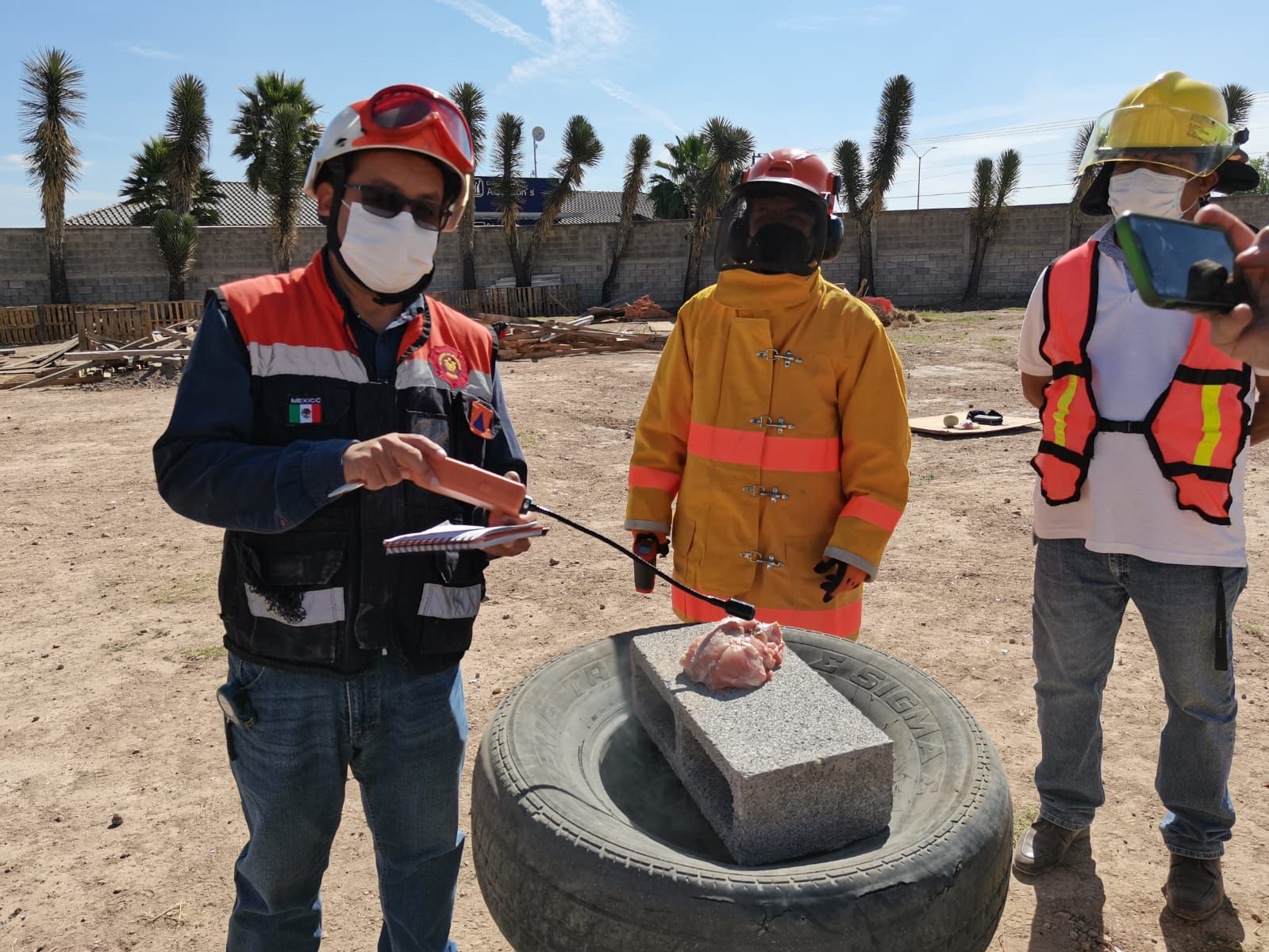 El director municipal, Enrique Torres participó con el coordinador estatal de Protección Civil en exhibición de riesgos por uso de este material.