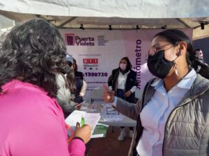 En el stand ubicado en la explanada del Planetario del Parque Tangamanga I, con motivo de la carrera atlética antes mencionada, hombres y mujeres se acercaron a solicitar informes y platicar para resolver algunas de sus dudas con el equipo multidisciplinario de Puerta Violeta, a quienes les entregaban un gráfico con diversos niveles de agresiones que en ocasiones, la población las considera comportamientos normales pero van más allá del respeto a las personas, también entregaron trípticos con las funciones que realiza este programa y el propio Sistema Municipal DIF.