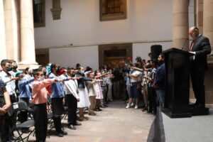 Por su parte, la Directora de Educación Municipal, Dulce Karina Benavides Ávila, acompañada por titulares de otras áreas de esta dependencia, destacó la institucionalización del Cabildo Infantil y confirmó que se planean actividades previas a la toma de protesta para fomentar la convivencia de las niñas y niños con el Alcalde Enrique Galindo, así como con regidoras, regidores y síndicos.
