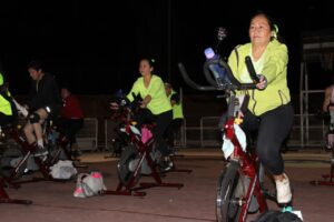 San Luis Potosí.- Exitosa resultó la súper clase de spinning nocturna, realizada en el Centro Deportivo Plan de Ayutla, donde tomaron parte medio centenar de asistentes, quienes a lo largo de dos horas disfrutaron de actividad física en bicicleta estática.