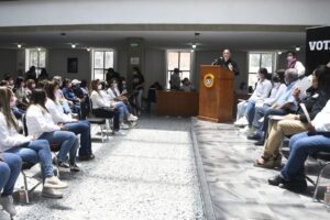 La Lic. Verónica Campillo Salazar, regidora del Ayuntamiento, se dirigió a Enrique Galindo «actualmente, candidato, pero sin duda próximo presidente municipal, le solicitamos que durante su periodo apoye a nuestras compañeras en lo siguiente: becas escolares para las mujeres trabajadoras y sus hijos, porque es necesario que tengan acceso y facilidades para continuar su educación y así poder crecer de manera profesional».