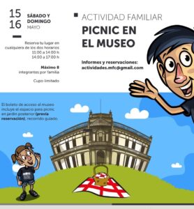 Podrán ingresar un máximo de 8 integrantes por familia, con boleto de acceso al museo, que incluye el espacio para picnic en el jardín posterior (previa reservación), recorrido guiado, permiso para fotografías y un momento familiar inolvidable. Para más detalles y reservaciones escribir a actividades.mfc@gmail.com.