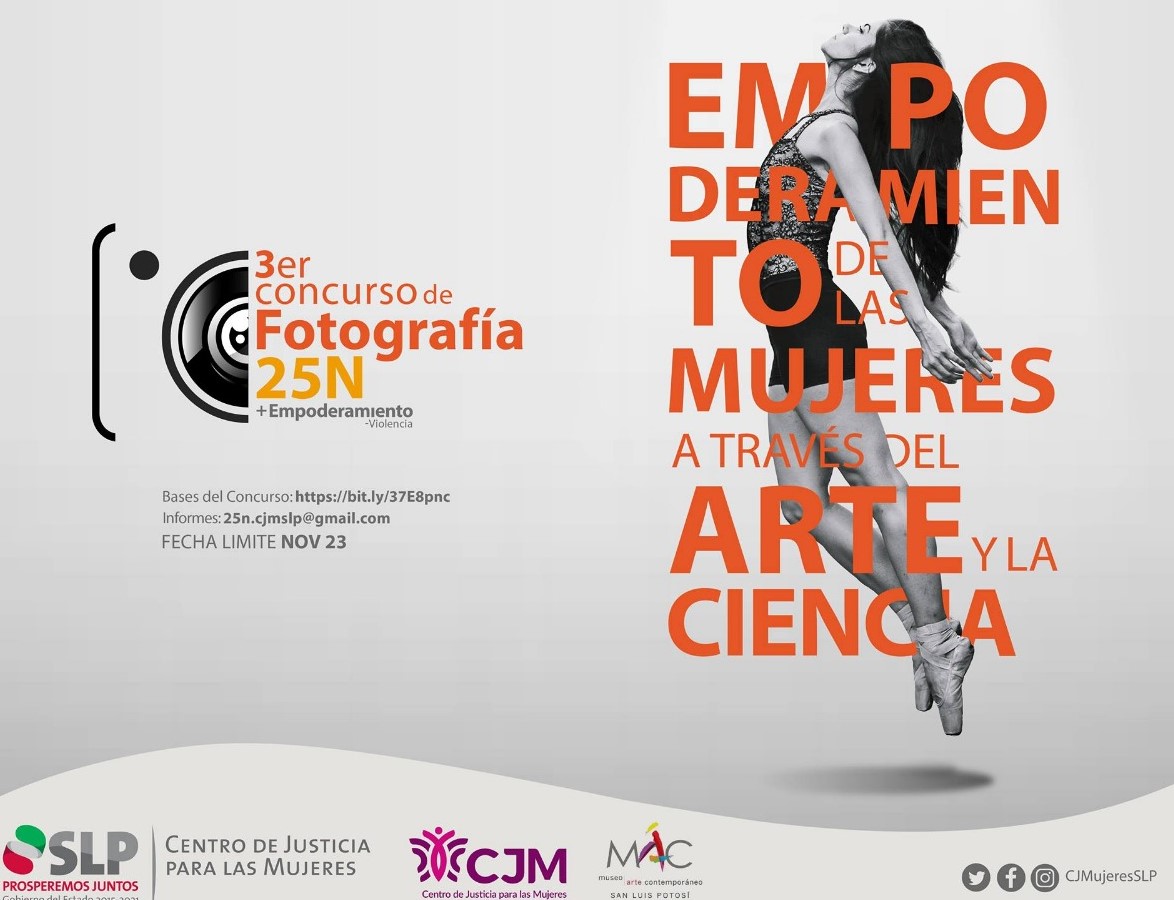 Las fotografías que participen deberán ser entregadas a más tardar el 20 de noviembre en las oficinas de los Centros de Justicia para las Mujeres de San Luis Potosí, Rioverde, Matehuala y Matlapa, a fin de que sean incluidas en la exposición que se realizará el 27 de noviembre en el Museo de Arte Contemporáneo en el marco del Foro 25N +Empoderamiento –Violencia.