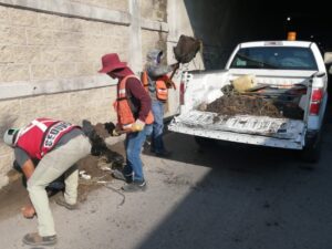 Con el propósito de evitar inundaciones y ante las lluvias que se han registrado en la zona metropolitana, personal de la Dirección de Mantenimiento de la Secretaría de Desarrollo Urbano, Vivienda y Obras Públicas (SEDUVOP), realizó limpieza y desazolve en el bulevar del Río Santiago y el paso a desnivel de Plaza San Luis.