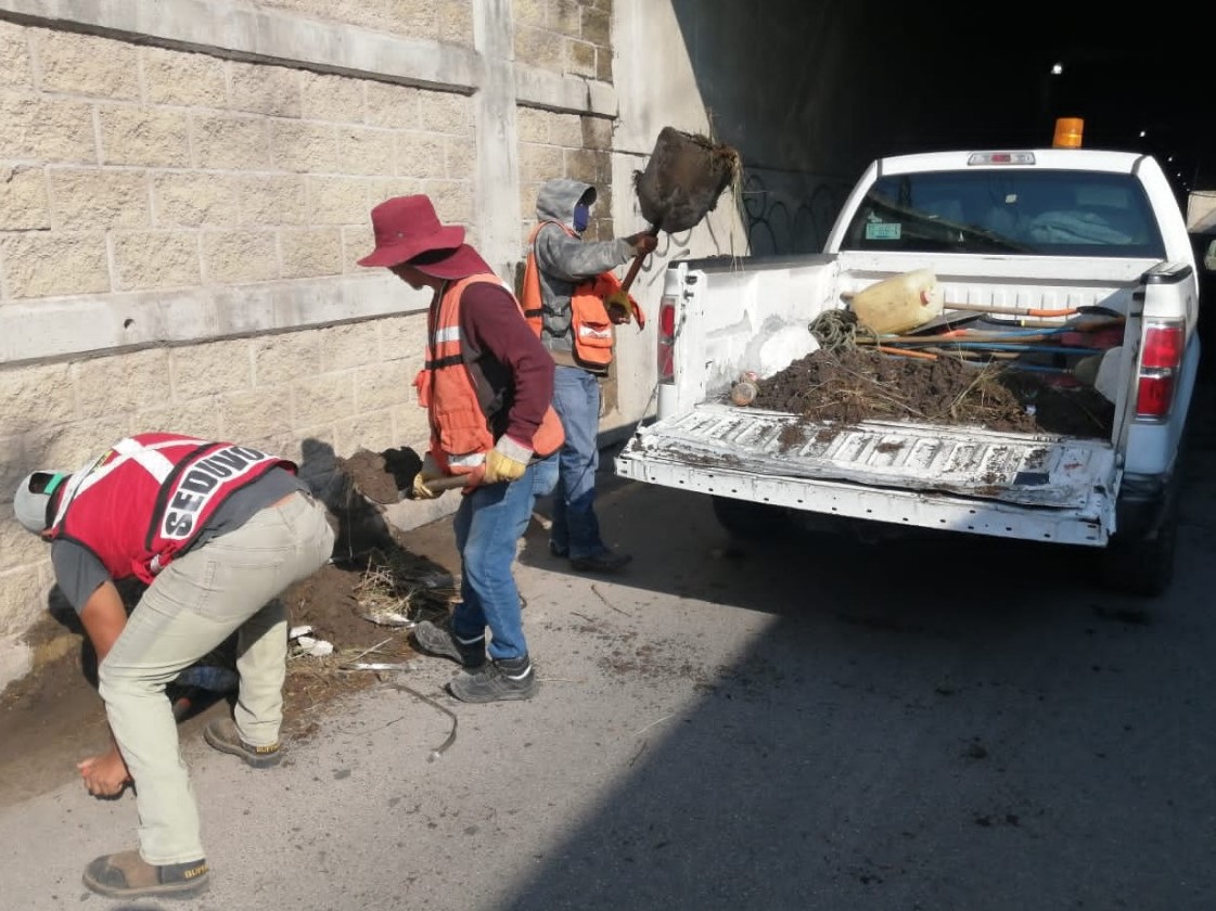 En lo que se refiere al paso a desnivel de Plaza San Luis, se trabajó tanto en la vialidad, como en sus canales, que contaban con desperdicios y materiales que obstruyen el paso.
