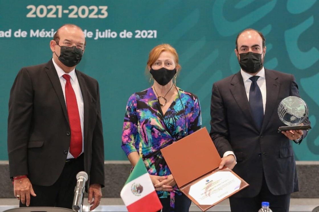 En el marco de la toma de protesta del Consejo Directivo de la Asociación Mexicana de Secretarios de Desarrollo Económico (AMSDE) 2021-2023, encabezada por la Secretaria de Economía, Tatiana Clouthier, se entregó un reconocimiento a Gustavo Puente Orozco, secretario de Desarrollo Económico de San Luis Potosí, por su labor al frente de este organismo durante el periodo 2019-2021.