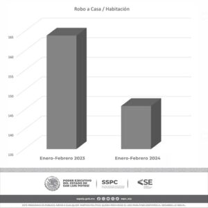 Durante los meses de enero y febrero, los delitos de alto impacto han experimentado reducciones significativas. El homicidio doloso ha disminuido en un 27%, mientras que el feminicidio no registró casos durante este período en 2024. Además, delitos que afectan la integridad y el bienestar de la ciudadanía, como robos a negocios, casas habitación, vehículos, transporte colectivo, autopartes y a transportistas, han experimentado descensos del 28%, 11%, 13%, 75%, 31% y 23% respectivamente.